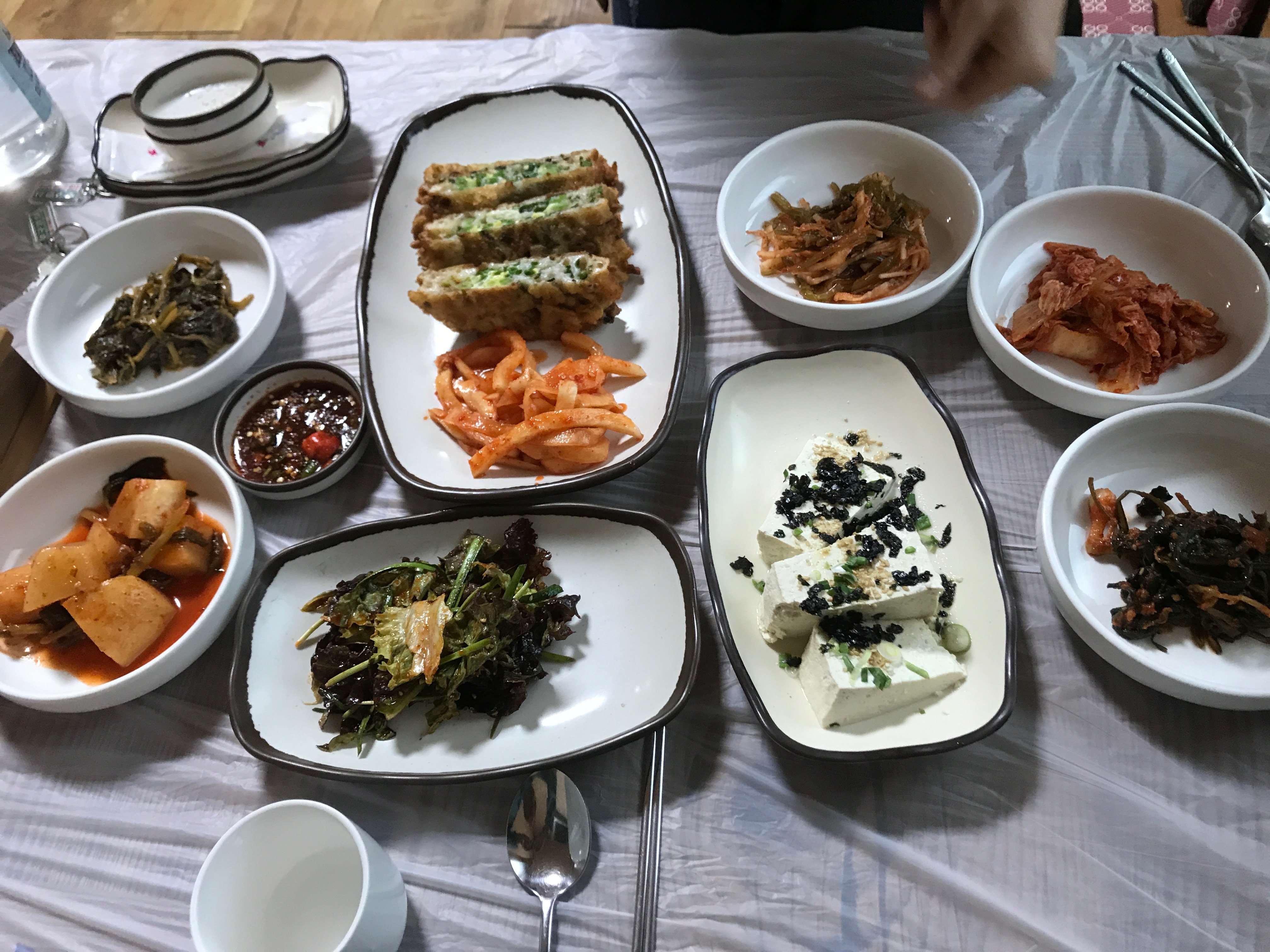 정갈하고 깔끔한 반찬에 눈에 띄는 파전.. 백숙시키면 그냥 줬다. 하지만 백숙다먹고 기본 파전 다 먹고도 한판 더 시켜서 먹어버렸다. 이건 비밀인데 말하고 싶었다. 이런 파전은 살면서 처음이었기에,