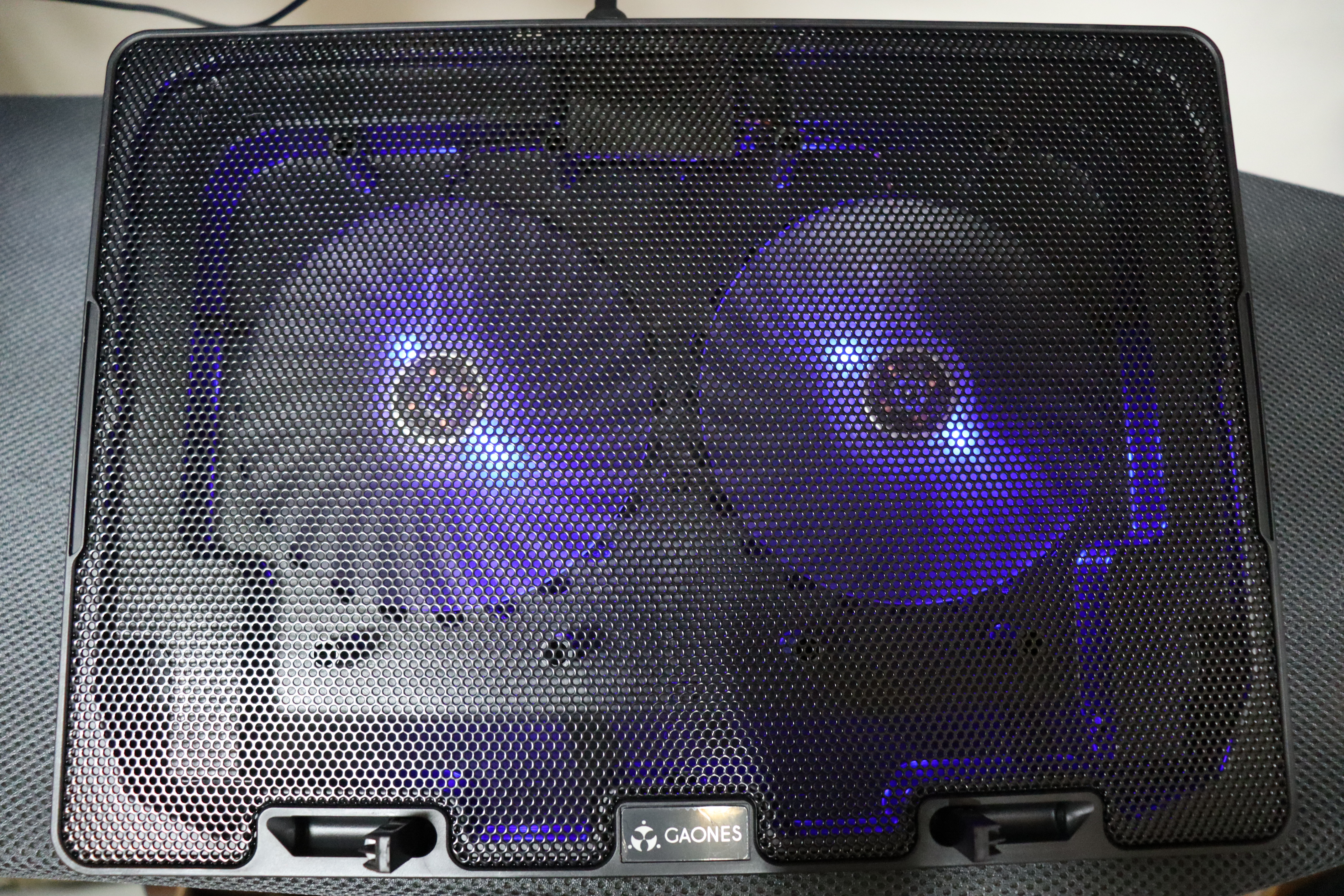 일단 이상품의 장점은 140mm 쿨링팬이 2개 세팅되어 있고 인체공학적인 디자인으로 작업을 할때 손목을 덜 아프게 해 주며 10~17인치의 노트북을 거치할 수 있고 추가로 USB 단자가 있다. 그리고 5단계로 걸쳐 높이 조절이 가능하며 슬림한 간편 사이드 지지대가 있다. 사이드 지지대가 사용하다 보면 가끔 손목에 걸려 거슬리지만 살짝 45도 각도로 기울여서 사용하면 큰 문제는 없다.
