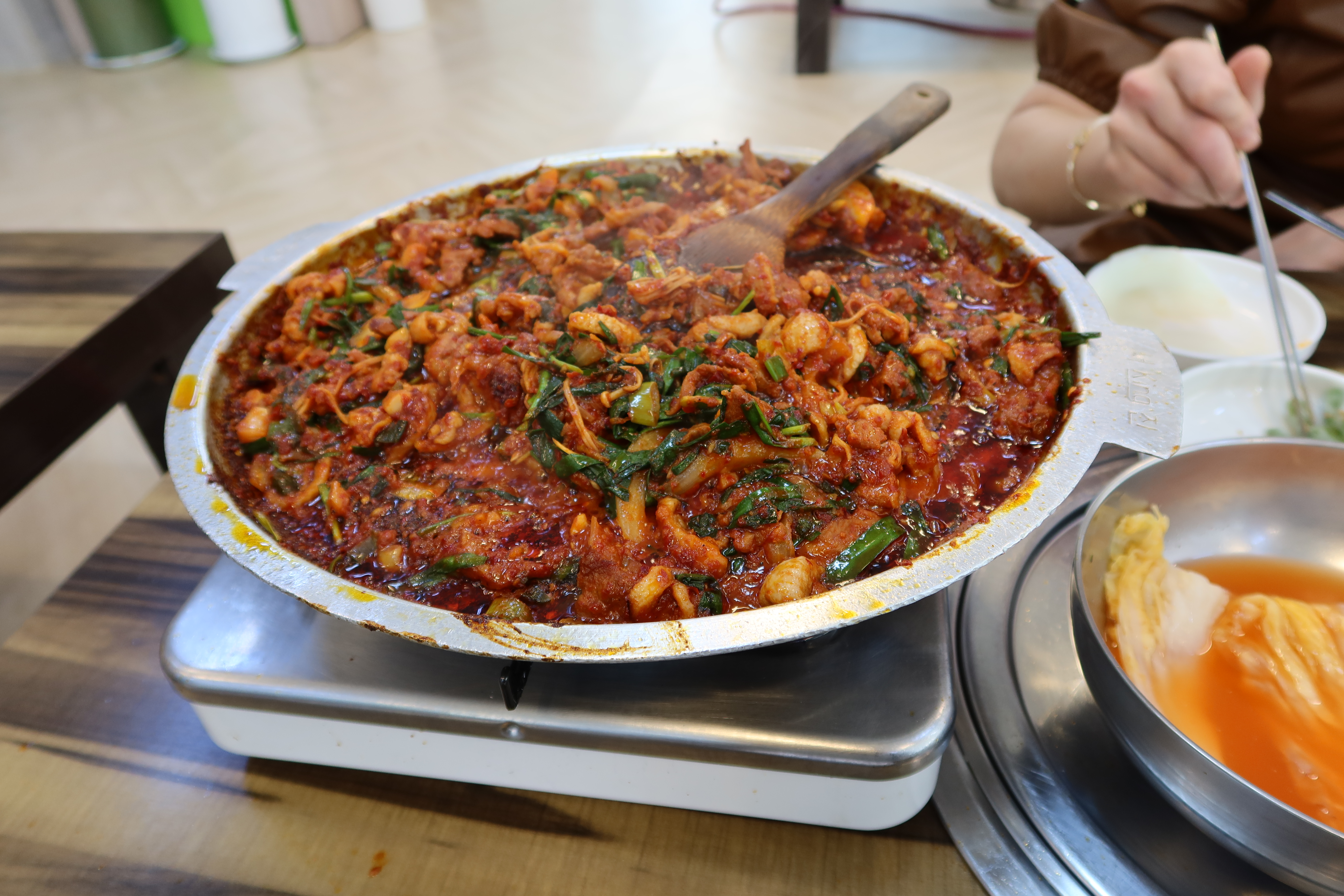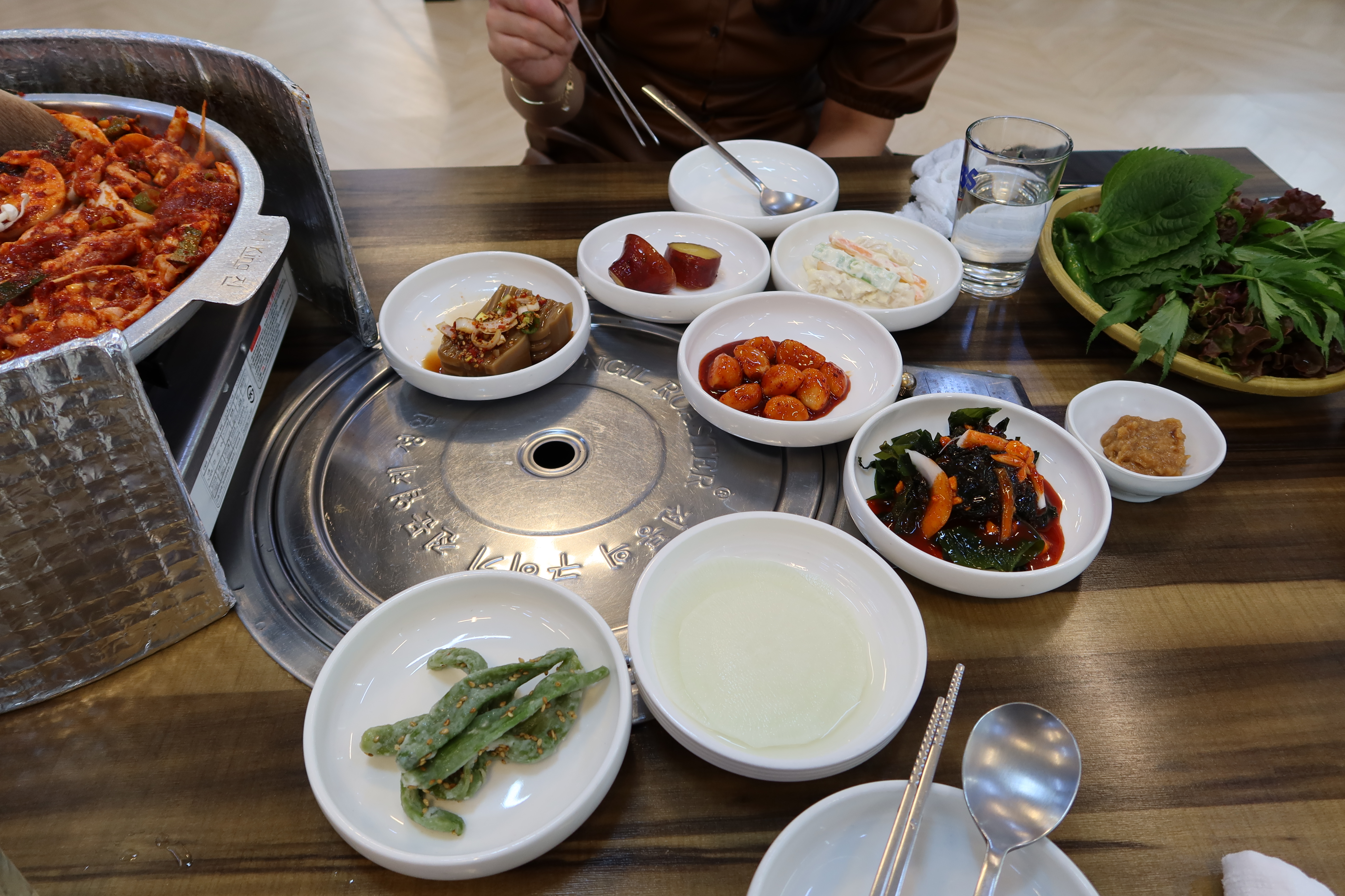 시원한 물김치 국물을 한사발 들이켜니 유튜브로 속앓이 하던 마음마저 정화시켜준다. 깨끗하고 정갈한 반찬들이 오리고기가 익기 전 우리의 배를 채워준다. 사실 이날도 반찬 한번 더 리필해서 먹었다. 개인적으로 이곳의 꽈리고추는 별미 중에 별미이다. 정말 간이 적당하고 맛있다. 글을 쓰면서도 침을 흘릴 정도면.. 아참 주물럭이 메인이지!
